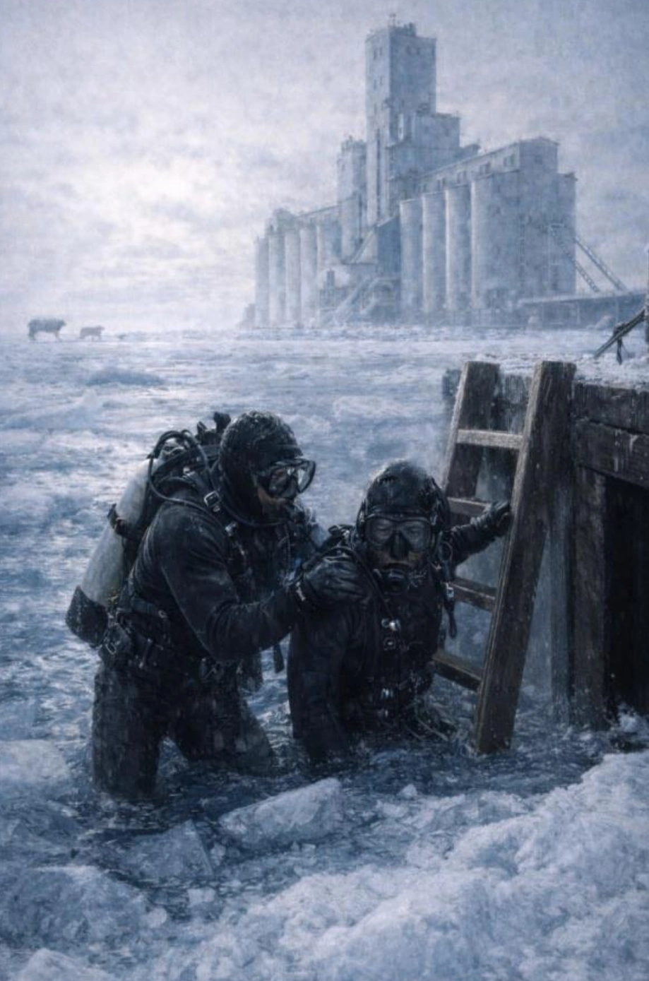 The journey eventually leads far north to the frozen waters of Churchill, Manitoba. Here, Gordon faces one of the most dangerous environments imaginable—diving beneath thick ice in zero-visibility waters while repairing structures deep below the surface.